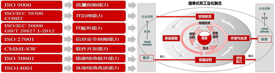 接點(diǎn)秉承二十年的管理體系咨詢經(jīng)驗,在建設(shè)兩化融合管理體系時,可同時通過流程優(yōu)化與組織重構(gòu)整合ISO9001、ISO140001等多種管理體系,使企業(yè)體系流程與管理流程一致、有效,充分發(fā)揮組織效率,真正杜絕“內(nèi)外兩張皮”現(xiàn)象。