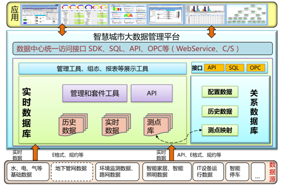 實時數據庫作為物聯網產業的基礎軟件,能有效支撐智慧城市大數據平臺的高效運轉,使平臺具有無限擴展上層智慧應用的能力,以及無限擴展下層數據接入的能力,起到了承上啟下的關鍵作用,是必不可少的關鍵部件。